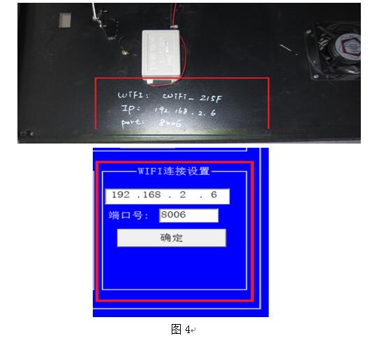 如果是第一次調(diào)試或使用軟件,建議檢查WIFI的IP地址和端口號(hào)設(shè)置是否正確,在“系統(tǒng)設(shè)置”對(duì)話(huà)框內(nèi),有“WIFI連接設(shè)置”項(xiàng),框內(nèi)有IP和端口號(hào)的信息,在設(shè)備的前面板打開(kāi)后,有此車(chē)轍儀的相關(guān)信息(見(jiàn)圖4),如果對(duì)應(yīng)就是設(shè)置正確。