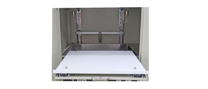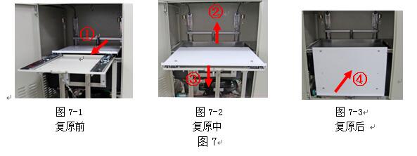 試驗完成后,一般可把活動托板處于打開待工作狀態(tài),如果儀器長期不用而需要關(guān)閉前門,需要將活動托板復(fù)原到初始位置,方法如下。