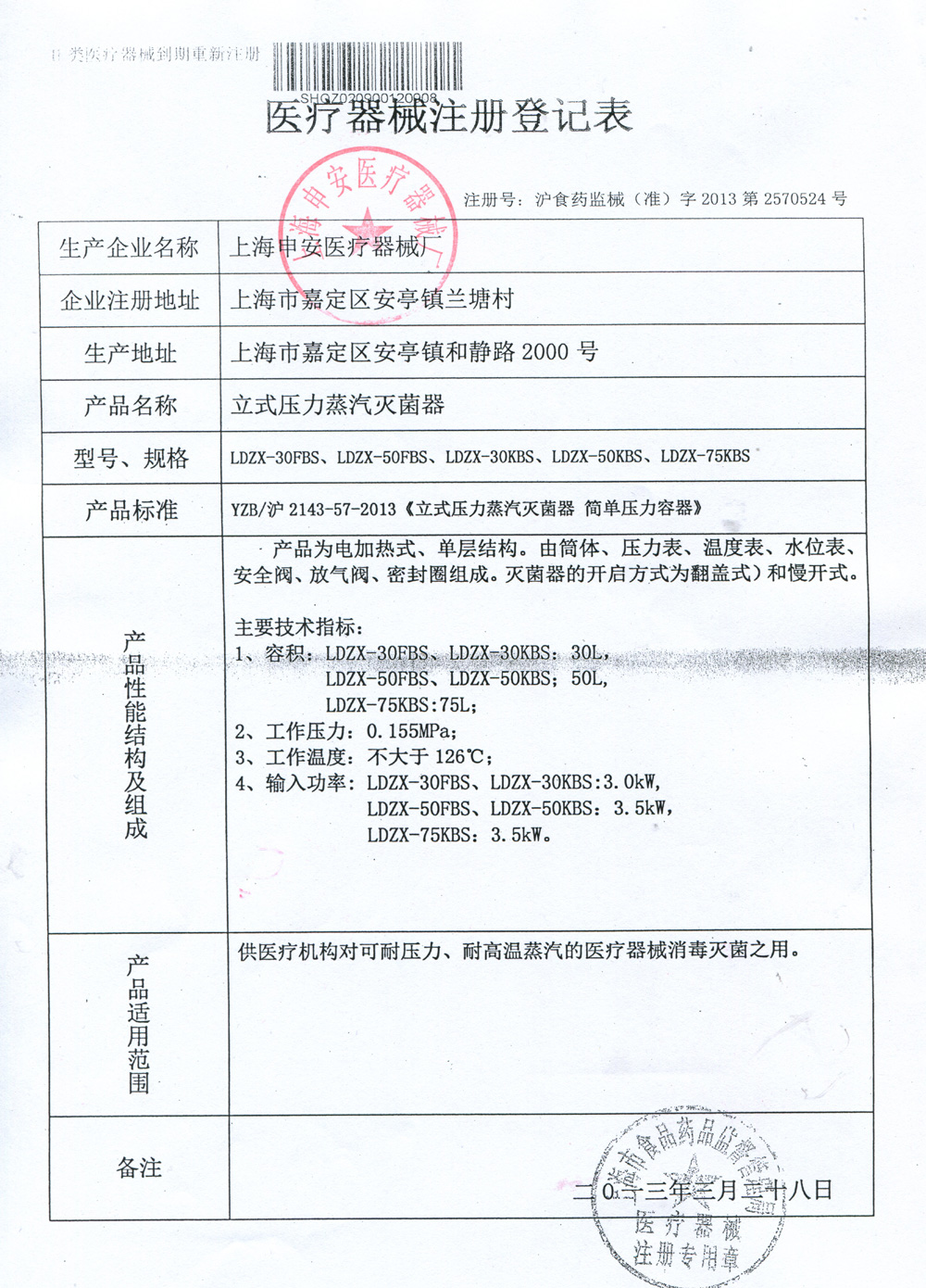 滬食藥監(jiān)械(準)字2013第2570524號